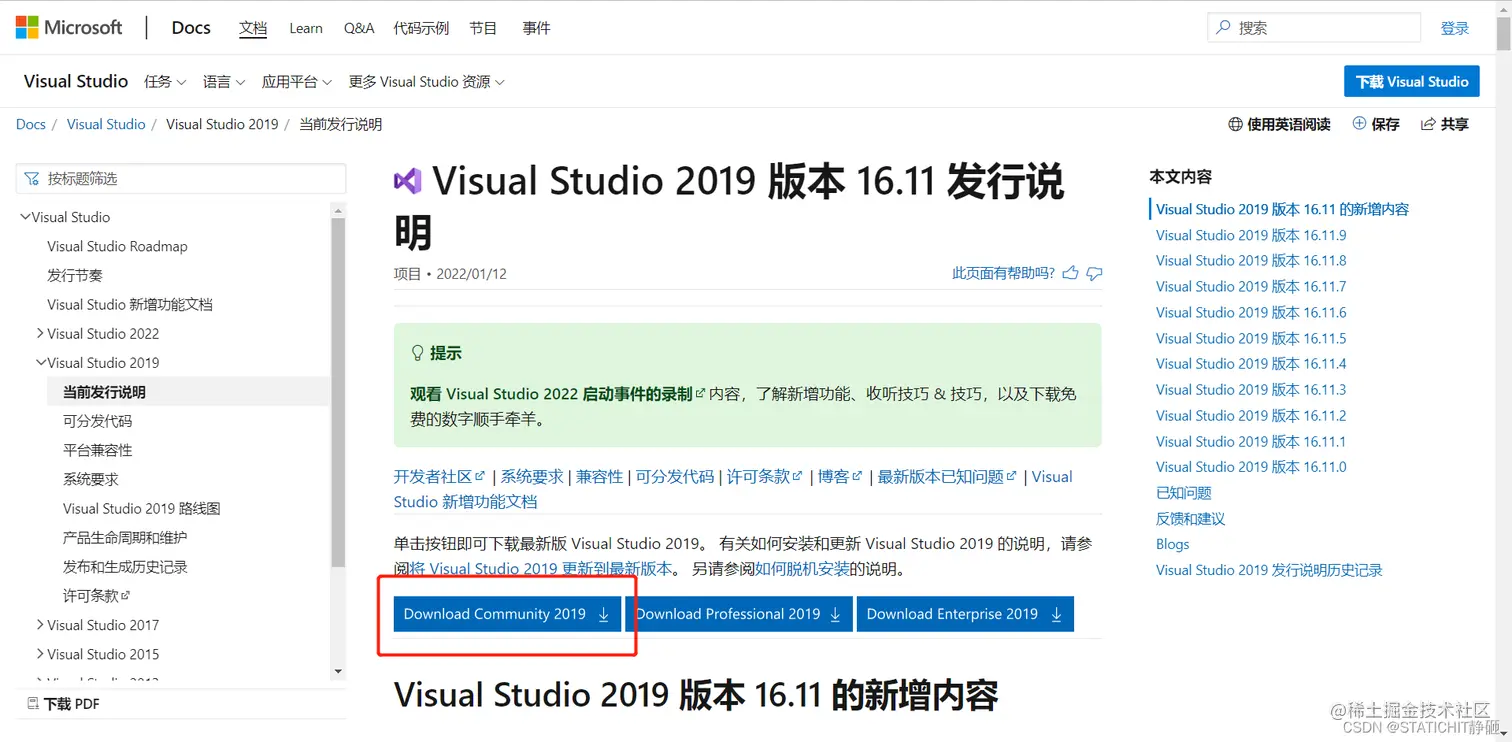 法二:Visual Studio 2019 版本https://docs.microsoft.com/zh-cn/visualstudio/releases/2019/release-notes