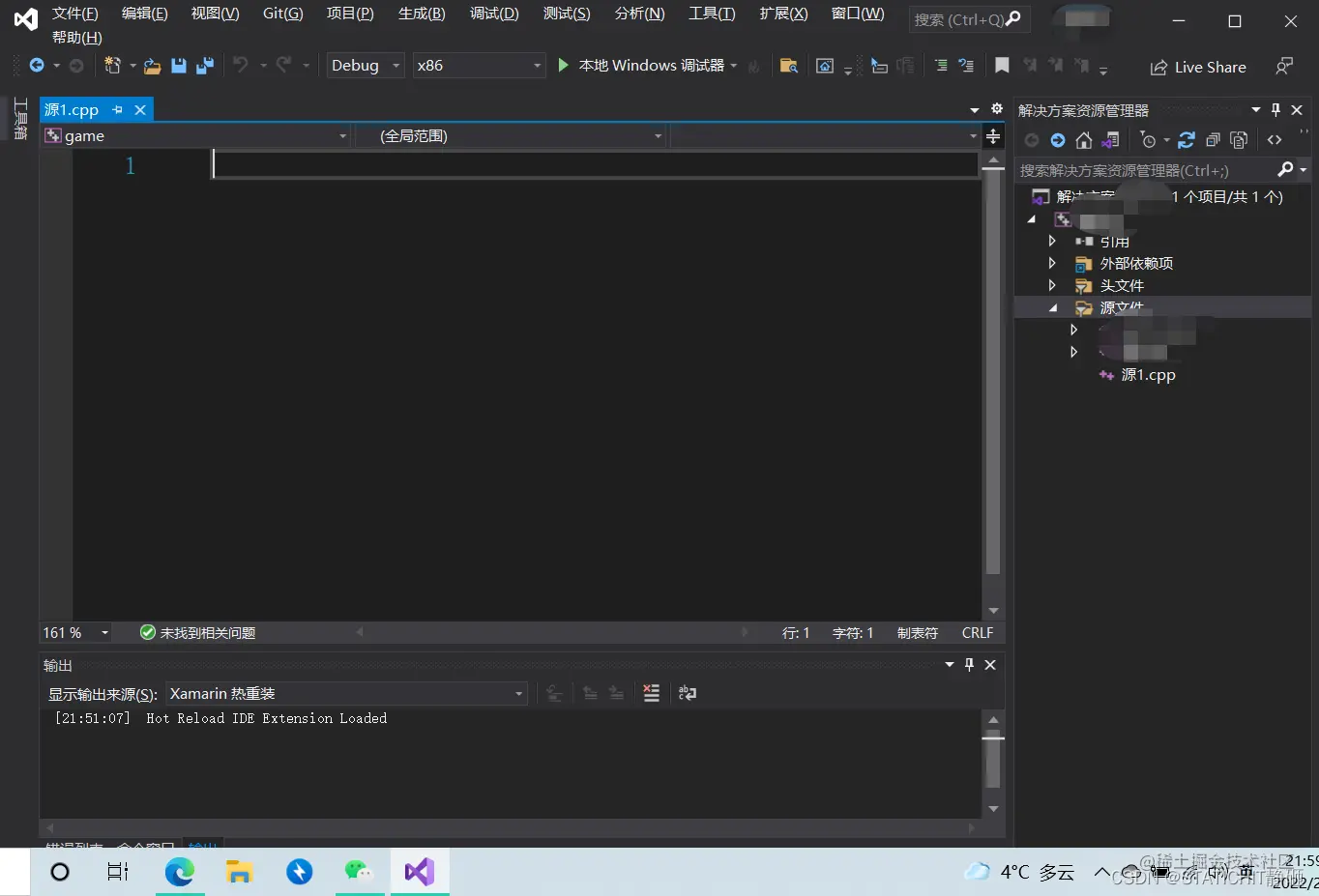 程序编写完毕点击上方的本地Windows调试器可以进行编译调试