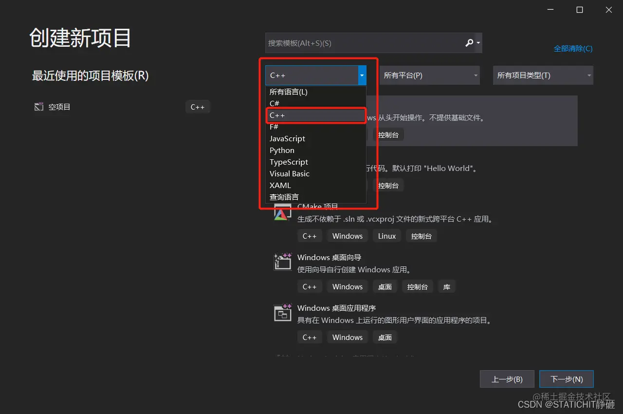 语言选择c++,c++涵盖了c所以想用c写项目也直接选择c++即可。