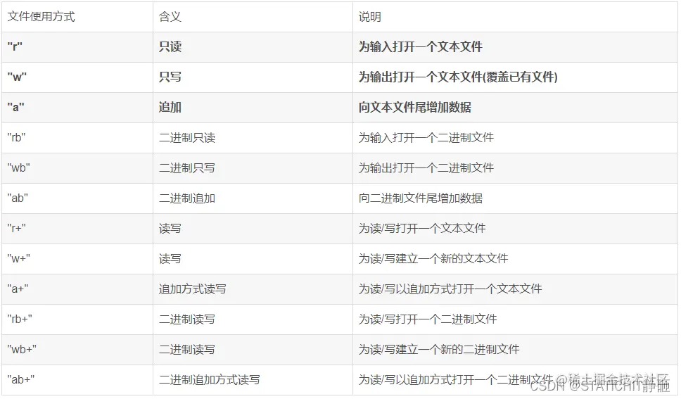 FILE *fopen(const char *filename, const char *mode) 使用给定的文件使用方式 mode 打开 filename 所指向的文件。