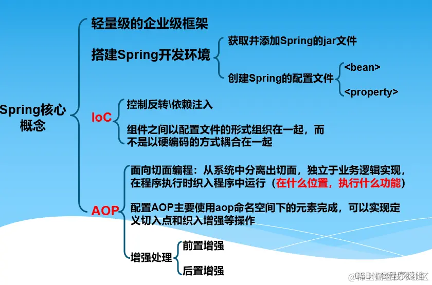 - Spring AOP:通过配置管理特性,Spring AOP 模块直接将面向切面的编程功能 , 集成到了 Spring 框架中。所以,可以很容易地使 Spring 框架管理任何支持 AOP的对象。Spring AOP 模块为基于 Spring 的应用程序中的对象提供了事务管理服务。通过使用 Spring AOP,不用依赖组件,就可以将声明性事务管理集成到应用程序中。