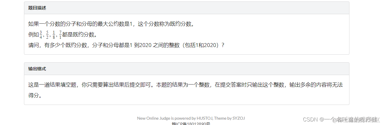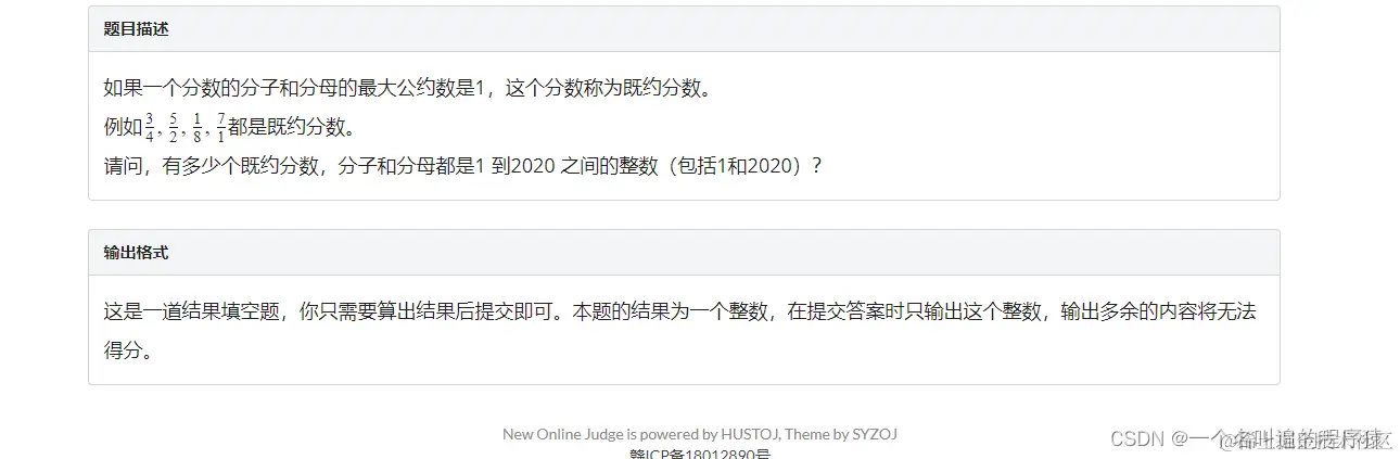 请问,有多少个既约分数,分子和分母都是1 到2020 之间的整数(包括1和2020)?输出格式