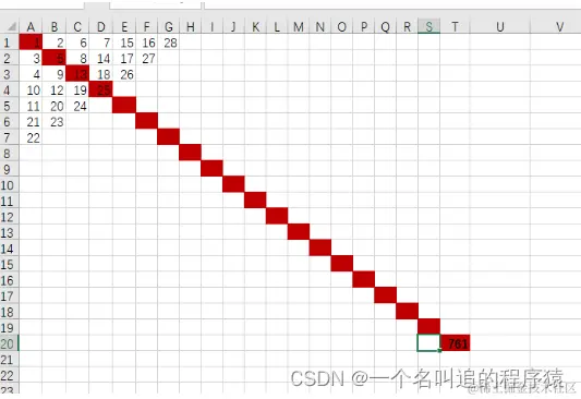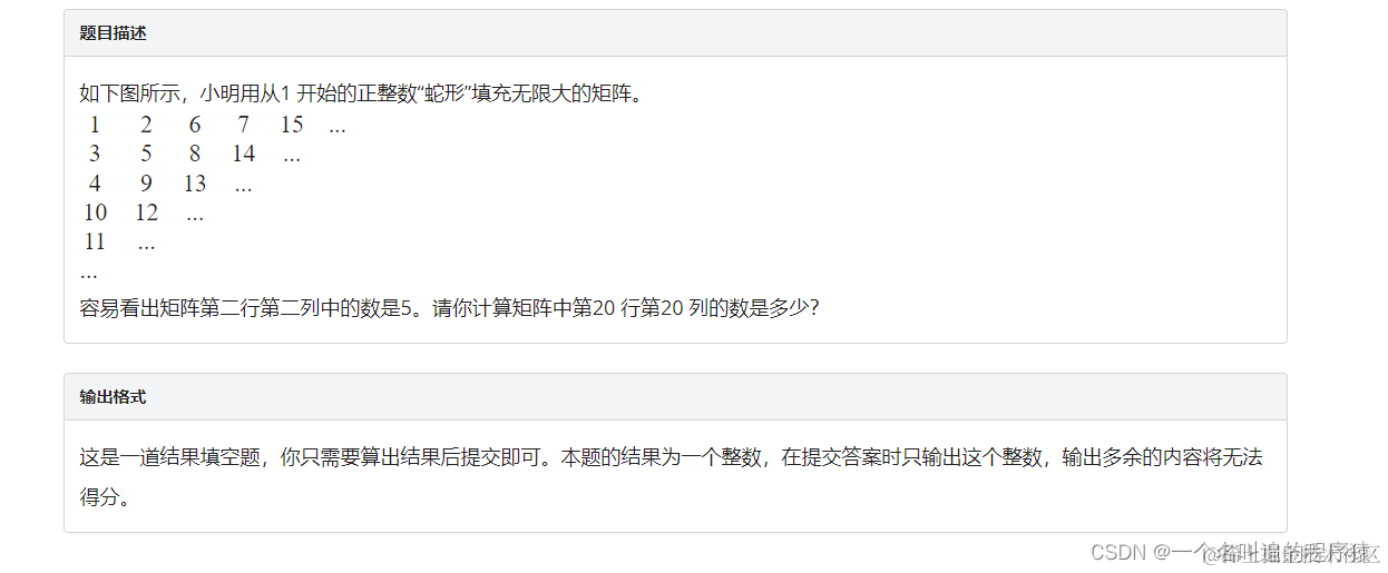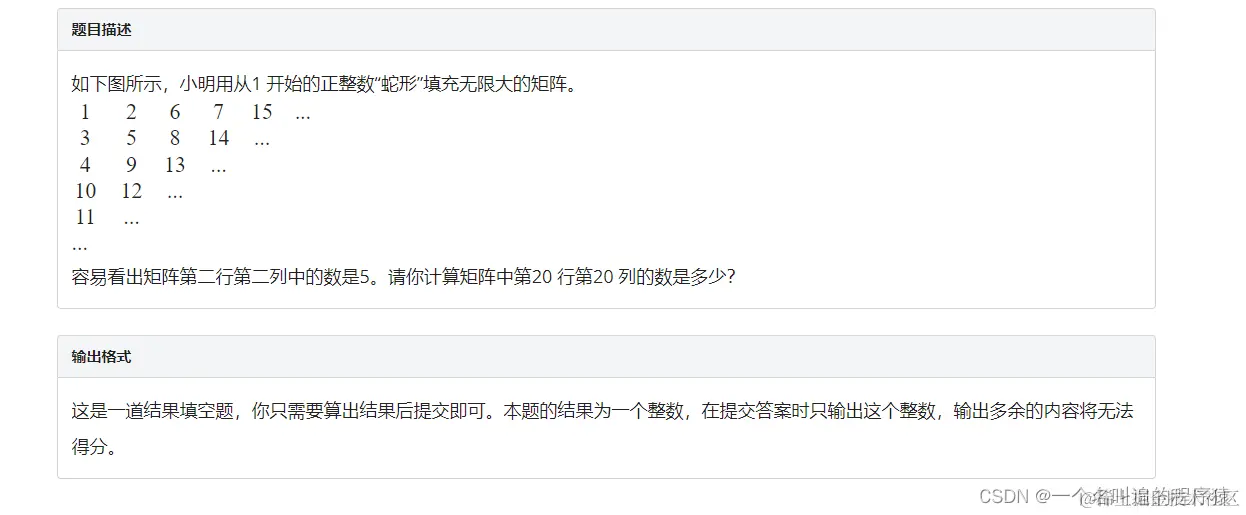 容易看出矩阵第二行第二列中的数是5。请你计算矩阵中第20 行第20 列的数是多少?输出格式