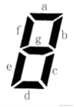上图给出了七段码数码管的一个图示,数码管中一共有7 段可以发光的二极管,分别标记为a, b, c, d, e, f, g。