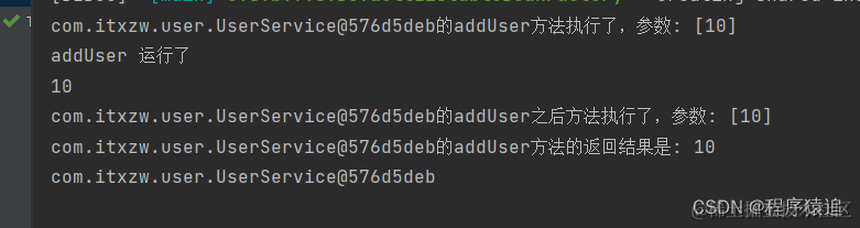 System.out.println(jp.getTarget() + "的" + jp.getSignature().getName() + "之后方法执行了,参数: " + Arrays.toString(jp.getArgs()));