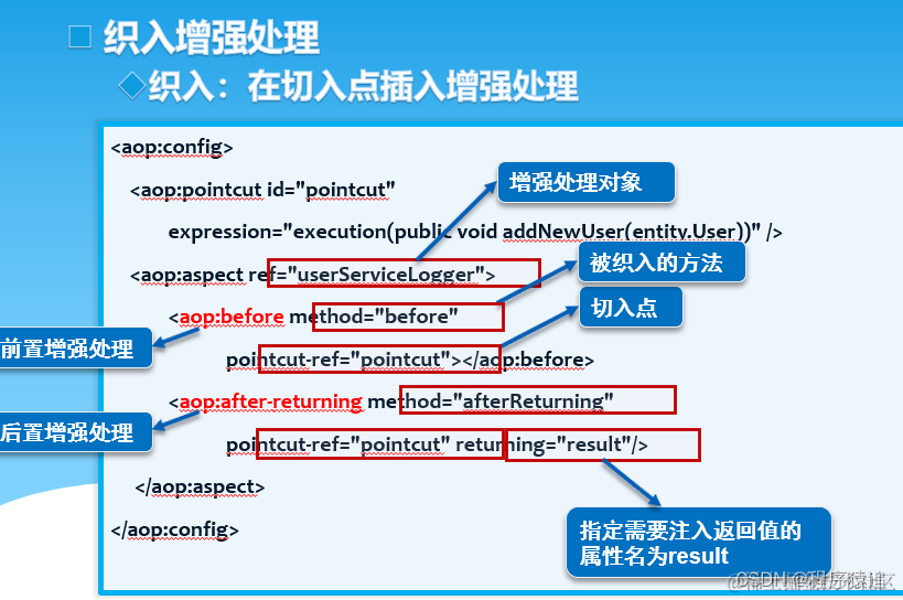 后置通知@AfterReturning:后置增强处理,在目标方法正常执行(不出现异常)后织入增强处理