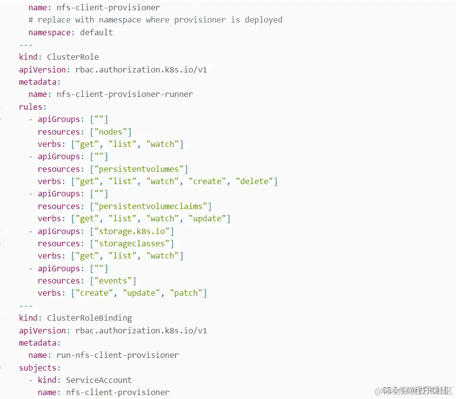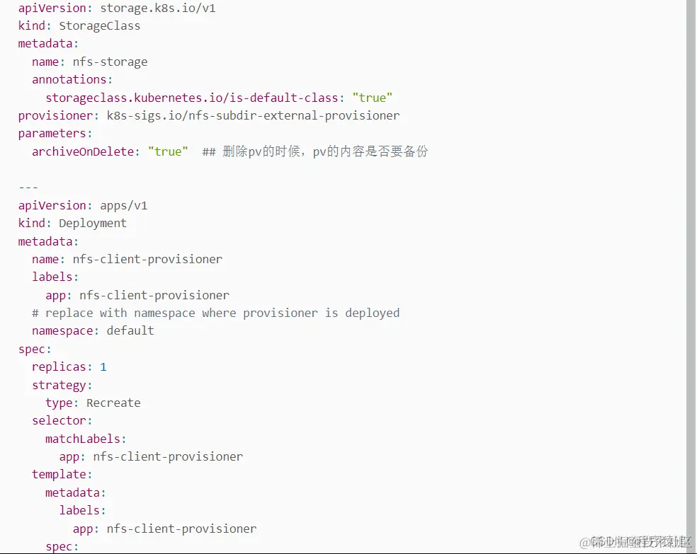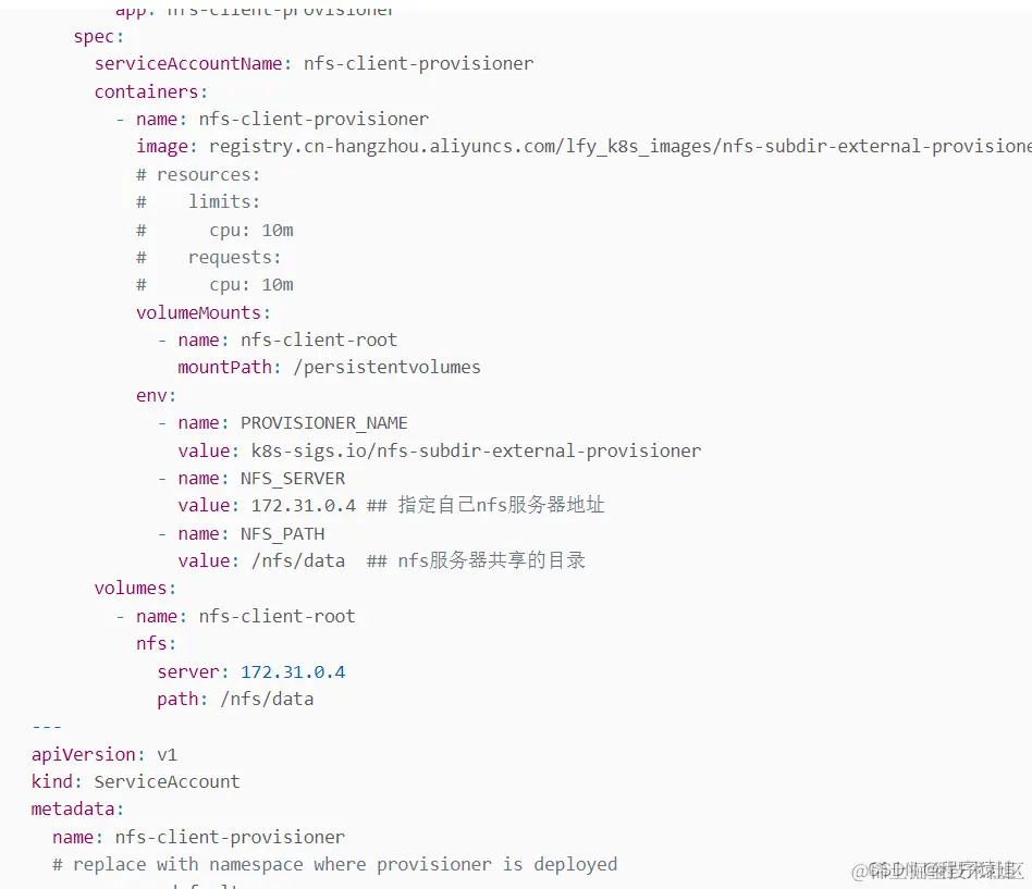 然后创建了一个存储类,指定自己 nfs 服务器地址与 nfs 服务器共享的目录