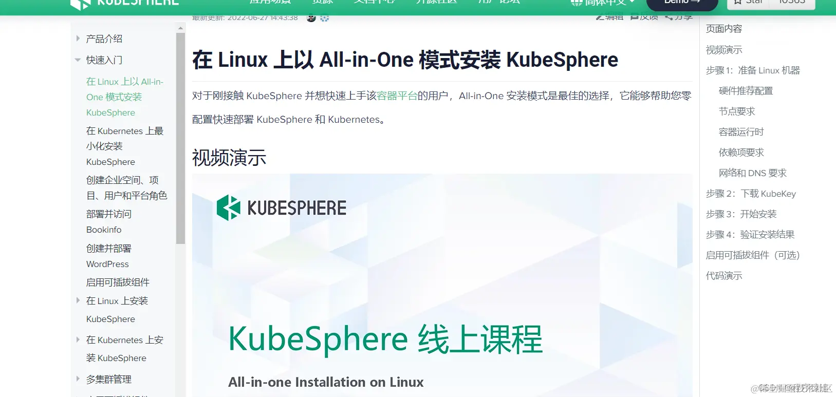 如果想在 Linux 上面单节点部署 KubeSphere 或者想多节点部署 KubeSphere 的话,可以在官方文档里面查看哟