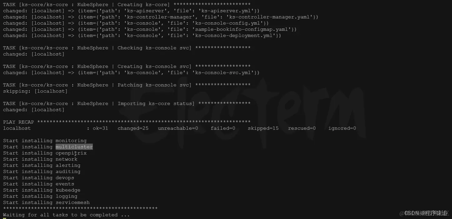 kubectl logs -n kubesphere-system $(kubectl get pod -n kubesphere-system -l app=ks-install -o jsonpath='{.items[0].metadata.name}') -f