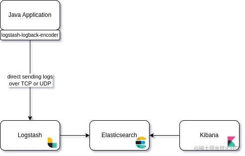 - 应用程序 (Java) + Logstash-logback-encoder -> Logstash -> Elasticsearch