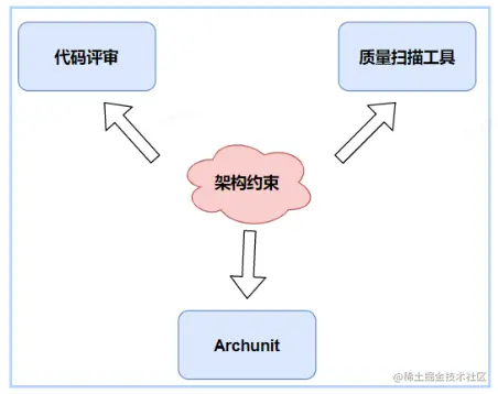 对于架构规则常见的验证方式:代码评审、代码质量分析工具或平台、Archunit