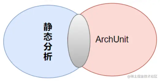 Archunit和代码质量分析工具的关系如下图所示,二者都可以对代码进行分析,在功能覆盖上存在一定交叉。