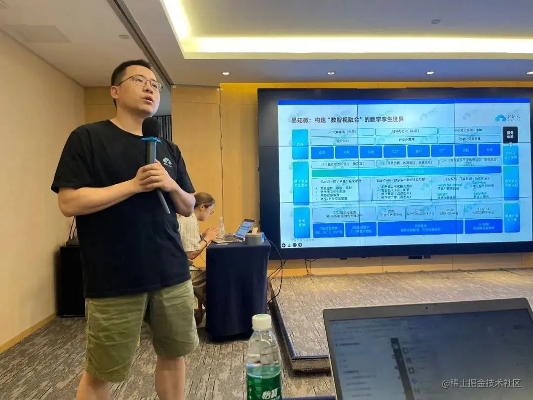接下来是易知微业务总经理冬狼就主题**《易知微:构建“数智视融合”的数字孪生世界》带来分享。通过分享可以了解到易知微的服务体系有可视化设计服务、数字孪生场景定制以及数据开发与治理**,通过类目完善的应用、功能齐全的数字孪生开发套件以及前沿智能的数据底板,搭建起“数智视融合”的数字孪生世界。同时,易知微拥有专业的交付团队,多次协助客户接待国家级领导参观访问,交付国家电网、贵州茅台、水利局等重点项目,在设计论坛、技术论坛都有一定的影响力,因此易知微拥有强大专业的智囊保障。