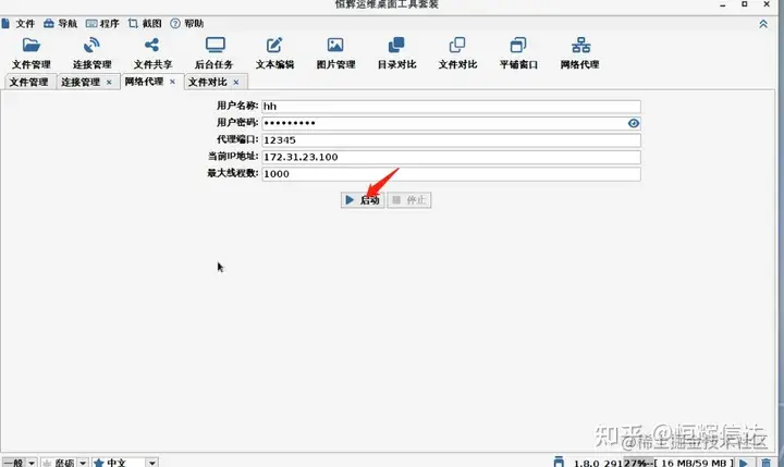 打开VNC窗口,在VNC窗口中配置代理服务器信息,点击启动,便直接开启代理服务。