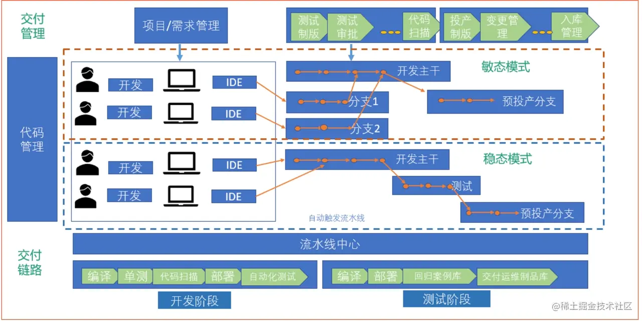 - 2020 年某头部城市银行正式启动 DevOps 建设,研发一体化平台的选型落地和全行推广使用。