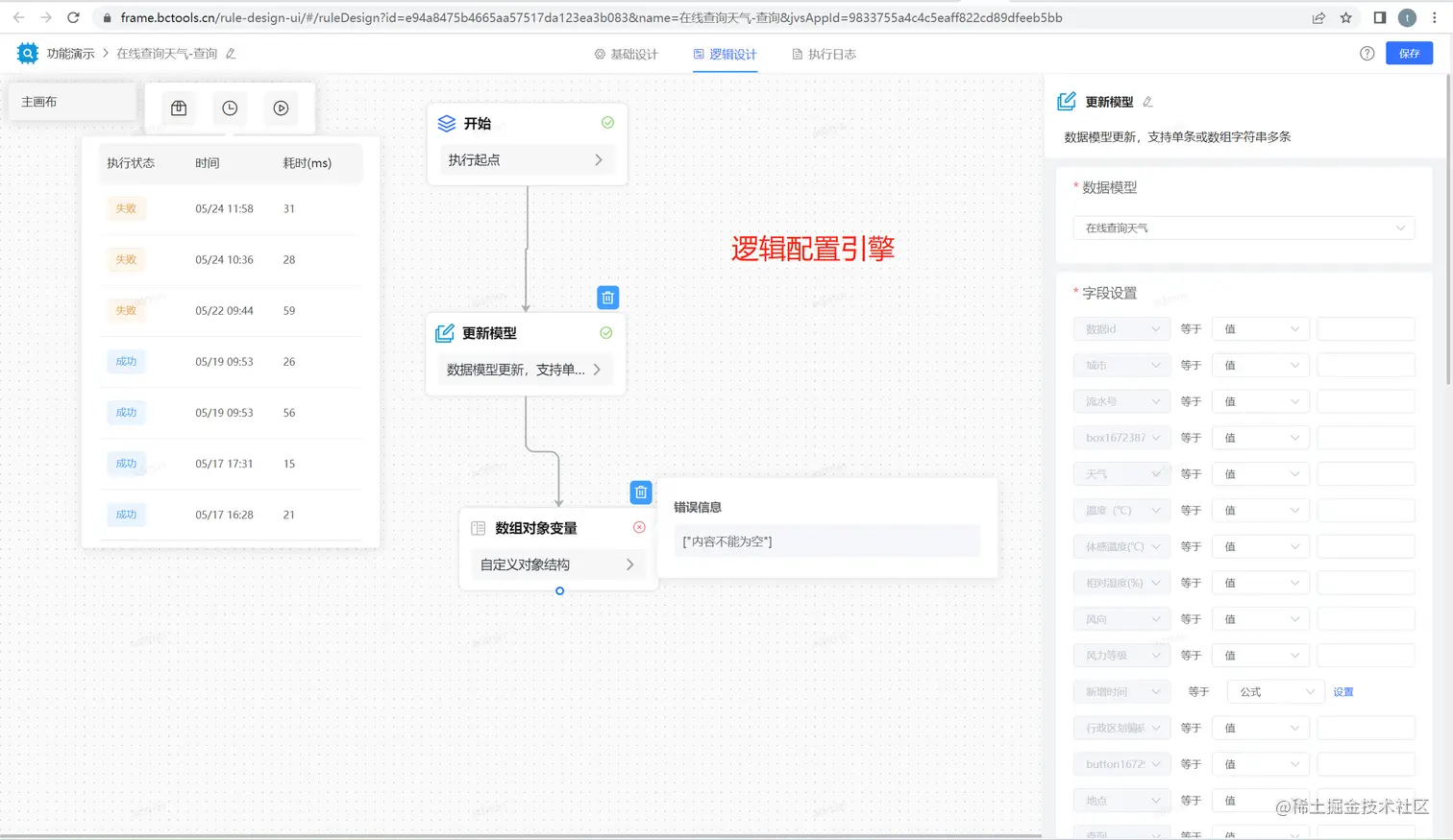 - 极简的配置操作:低代码平台需要具备实时应用配置的功能,可以企业内部的各个系统之间更加高效地协作,更加低成本的实现业务对接,提高业务流程的协同效率,下列展现部分配置器