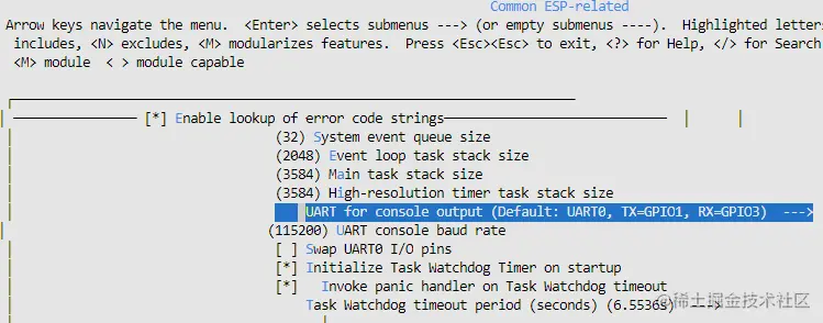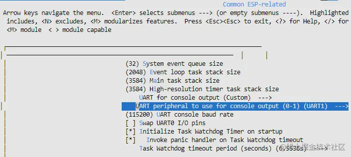 选择 UART peripheral to use for console output 改为 UART1 输出