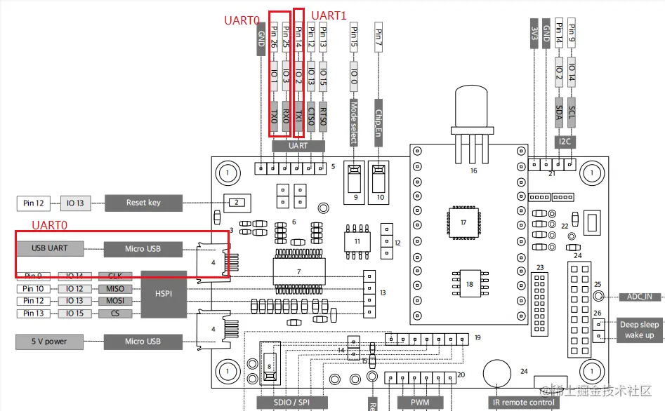 ESP8266 有两个UART。UART0有TX、RX作为 系统的打印信息输出接口 和 数据收发口,而UART1只有TX,作为 打印信息输出接口(调试用)。