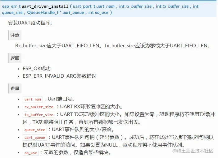 uart_driver_install(UART_NUM_0, BUF_SIZE * 2, BUF_SIZE * 2, 100, &s_uart0Queue, 0); // 安装UART驱动程序