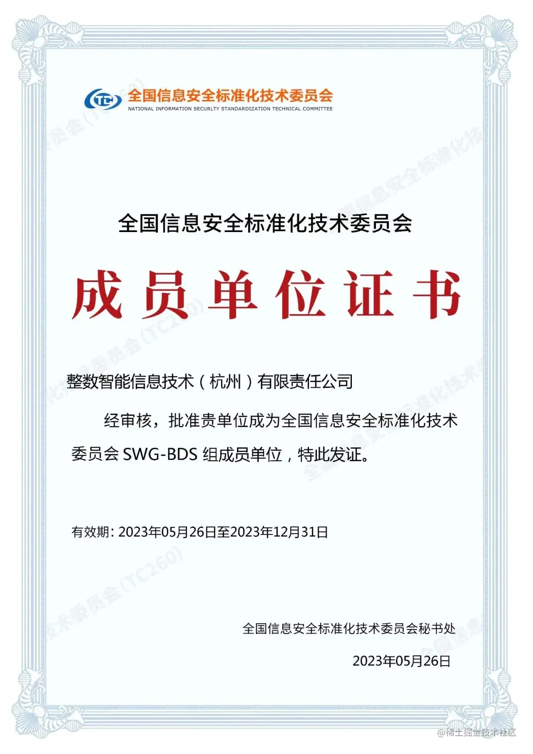 近日,整数智能成功通过审核,成为全国信息安全标准化技术委员会成员单位,隶属于SWG-BDS 大数据安全标准特别工作组。作为数据领域的解决方案专家,整数智能将与其他成员单位一起,协助委员会不断完善信息安全相关标准,助力我国产业信息安全建设与发展。