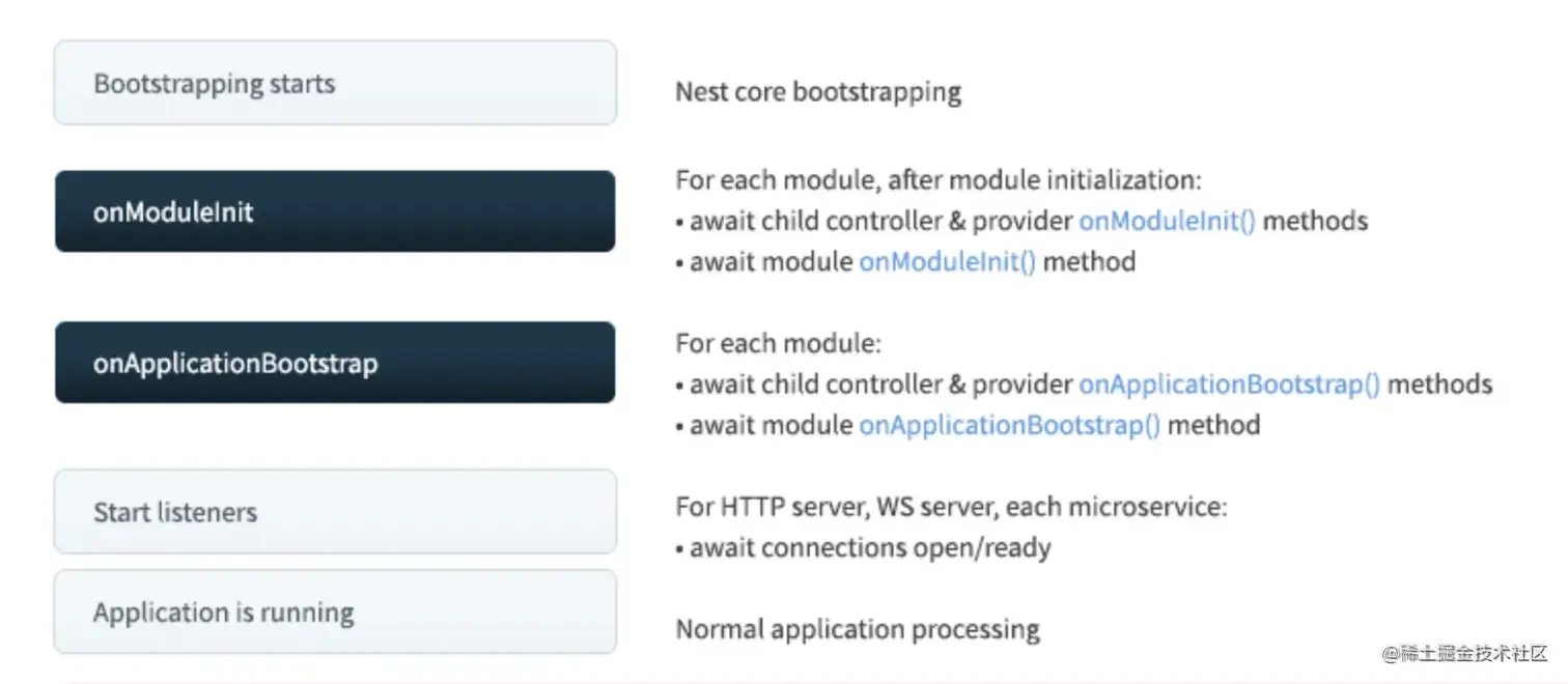 OnModuleInitOnApplicationBootstrapOnModuleDestroyBeforeApplicationShutdownOnApplicationShutdown