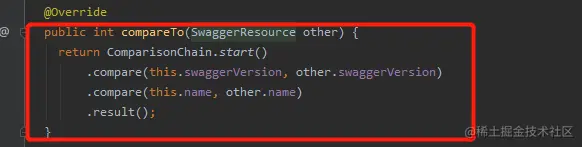 - 而swagger的默认排序重写的compareTo方法是根据版本,再根据名称升序排序,所以可以重写该类,然后通过参数配置随时改变分组排序
