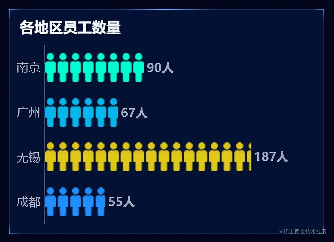 普通柱形图是大屏上最常用的图表类型,用于体现有横向对比关系的数据。