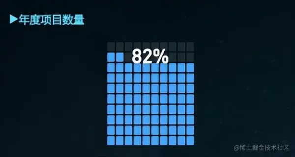 像素点图也是仪表盘的一种特殊形式,用点亮的方形像素点数量表示百分比数据,也可以进行多维度数据的轮播。