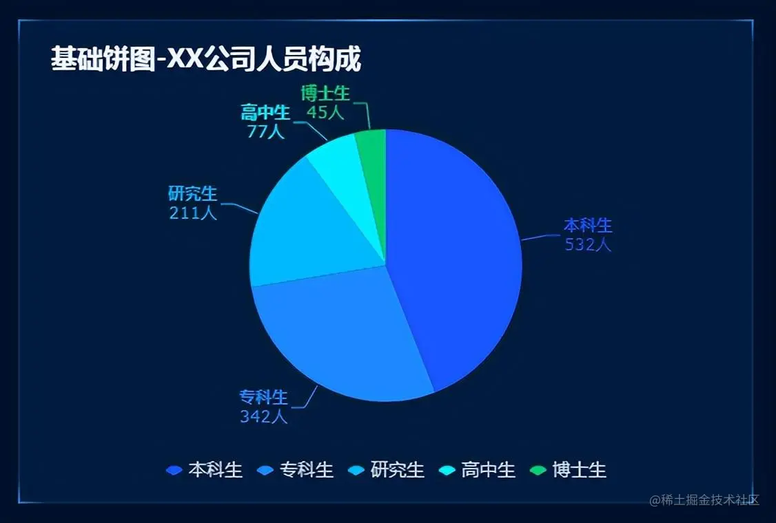 饼图用于展示数据占比,可以一眼看出一组数据中不同类别数据的分布状况。
