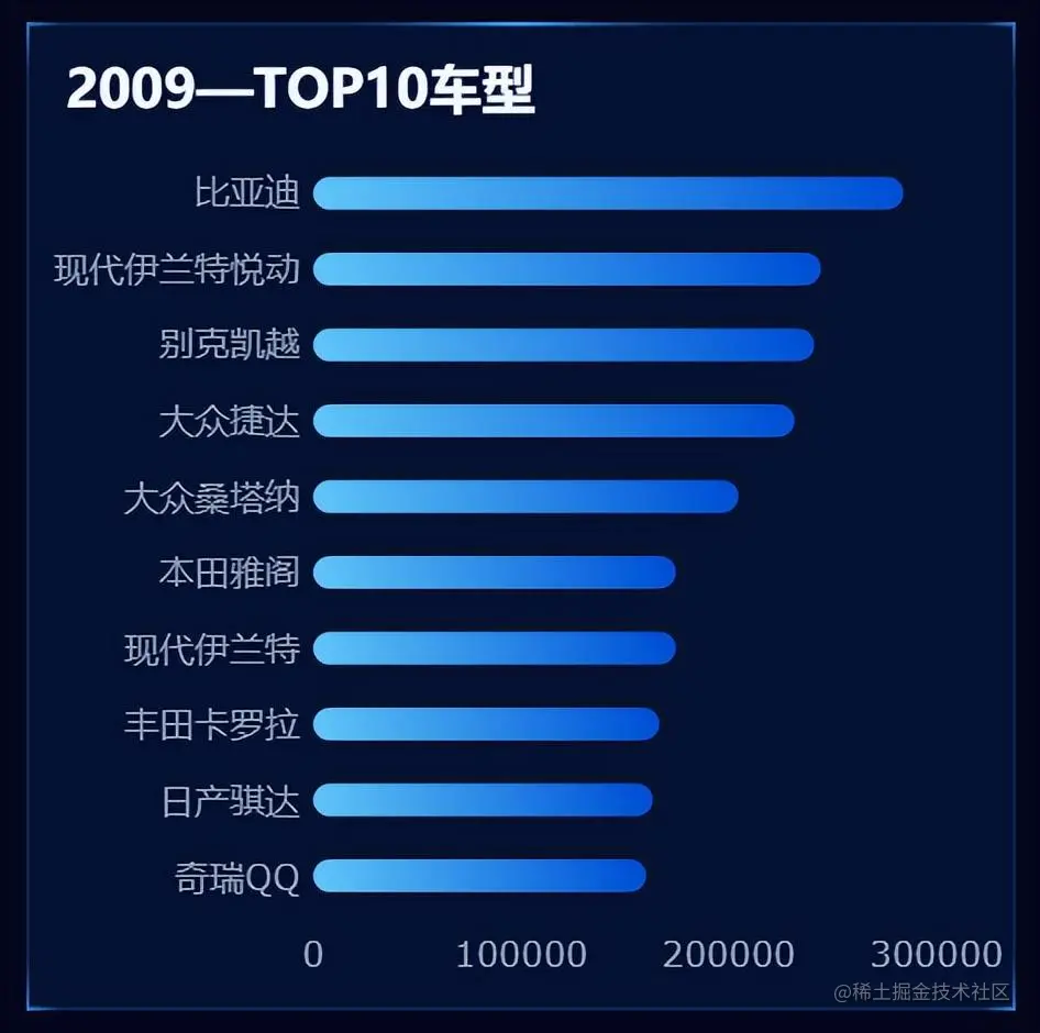 轮播条形图是普通条形图的升级版,将系列名、数值、排名和百分比条形图结合显示,且有动态轮播的效果。