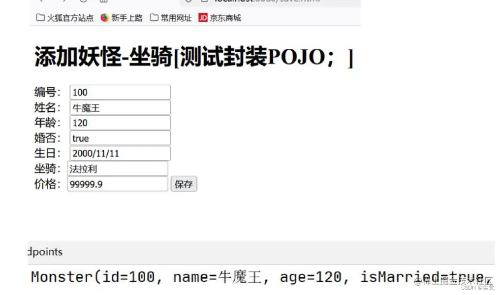 <h1>添加妖怪-坐骑[测试封装POJO;]</h1>