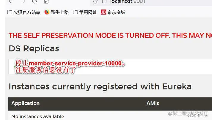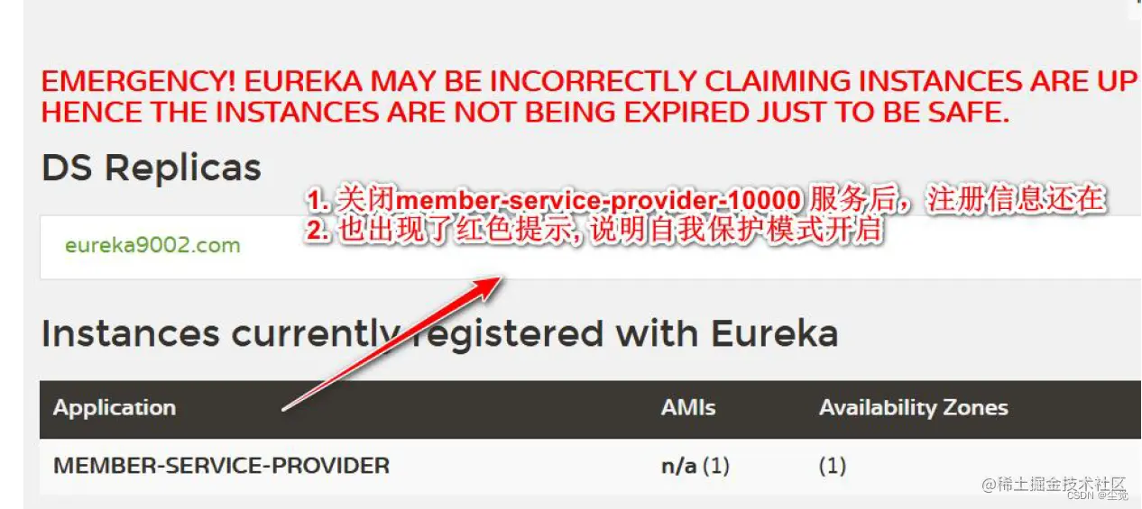 4. 在member-service-provider-10000 注册成功后,再关闭, 看看eureka server服务注册信息的变化