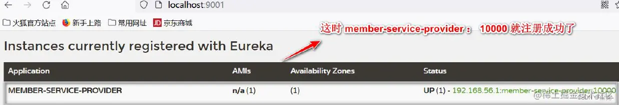 将member-service-provider-10000 作为EurekaClient 注册到e-commerce-eureka-server-9001 成为服务提供者
