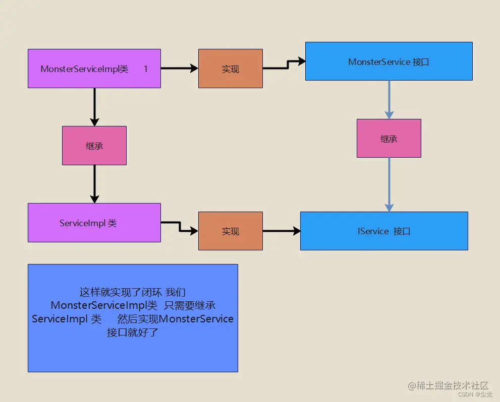 所以我们MonsterServiceImpl 继承了ServiceImpl类 就可以相当于实现了MonsterService接口.
