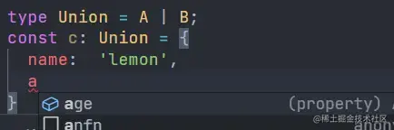当我们使用交叉类型读取属性,可以获取所有类型的所有属性名,赋值的时候需要满足所有类型的结构