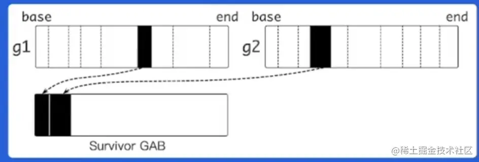 当GBA的数量到一个值的时候,对GBA进行清理,会把散落的对象集中起来,然后把原来的内存释放掉。