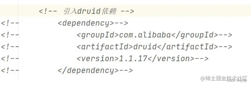 修改pom.xml 注销druid 的依赖
