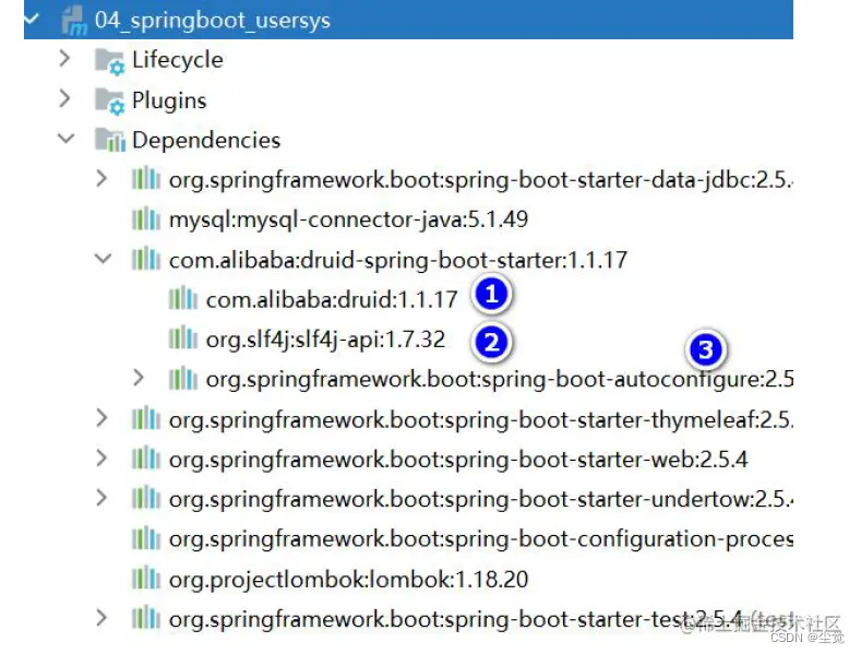 确认druid starter 引入哪些依赖