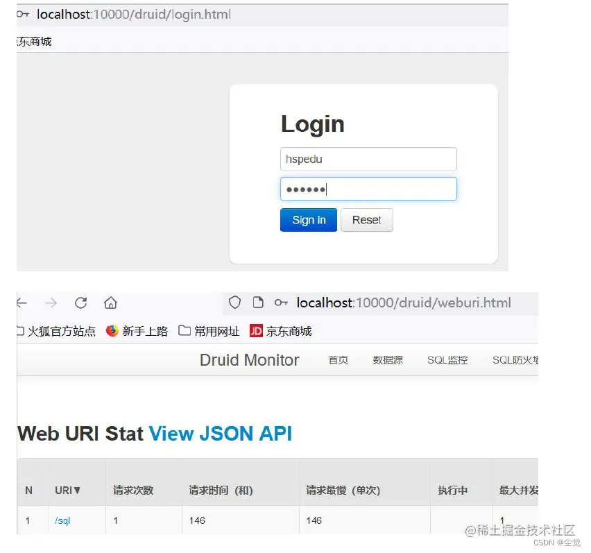 //配置druid的监控页功能