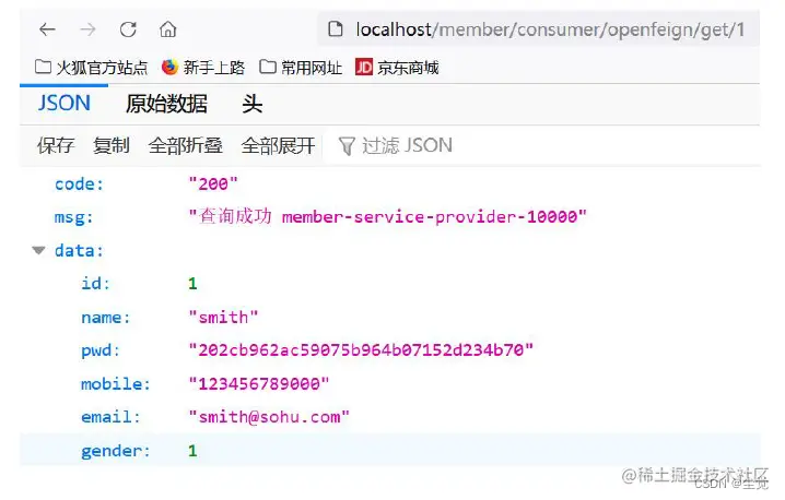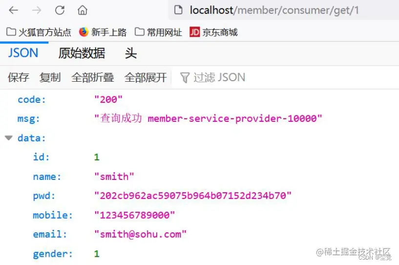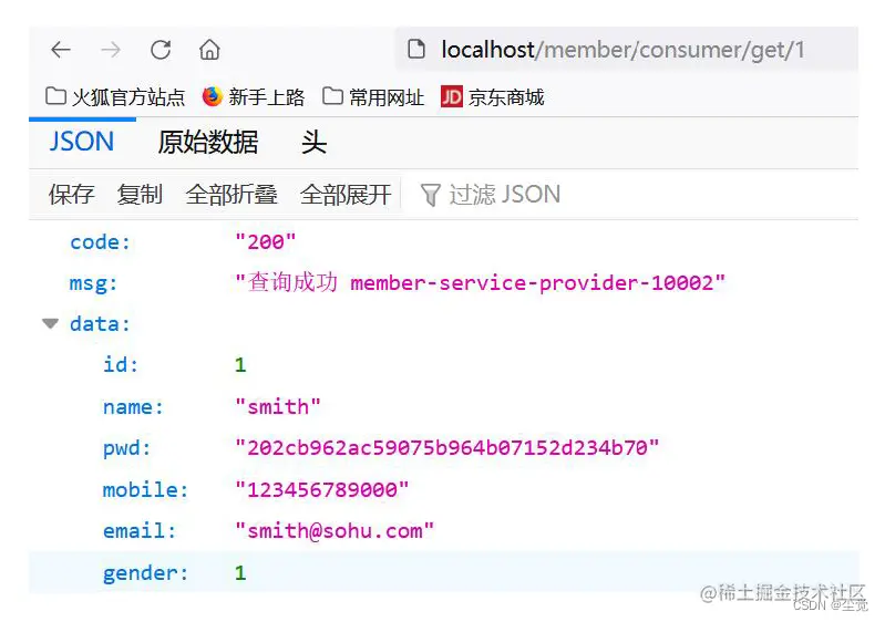 1. 浏览器输入: http://localhost/member/consumer/get/1