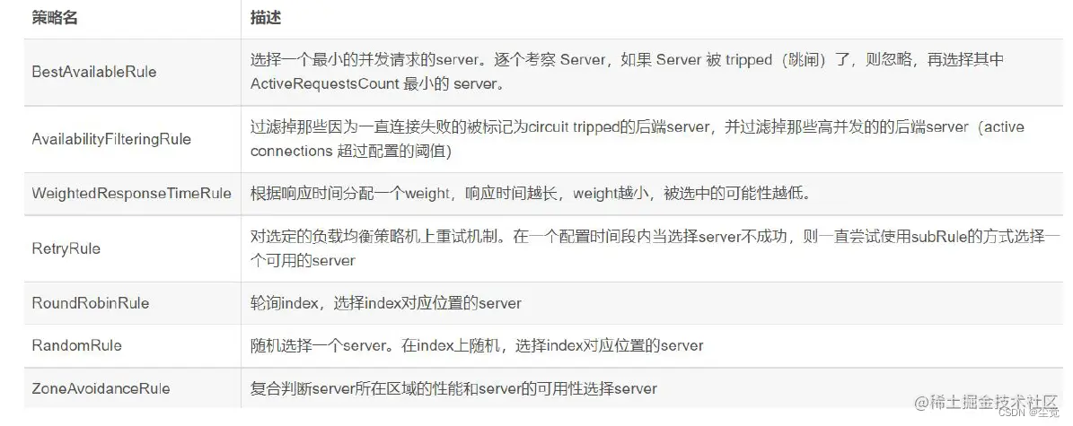 3. Ribbon 提供了多种策略∶ 比如轮询、随机和根据响应时间加权