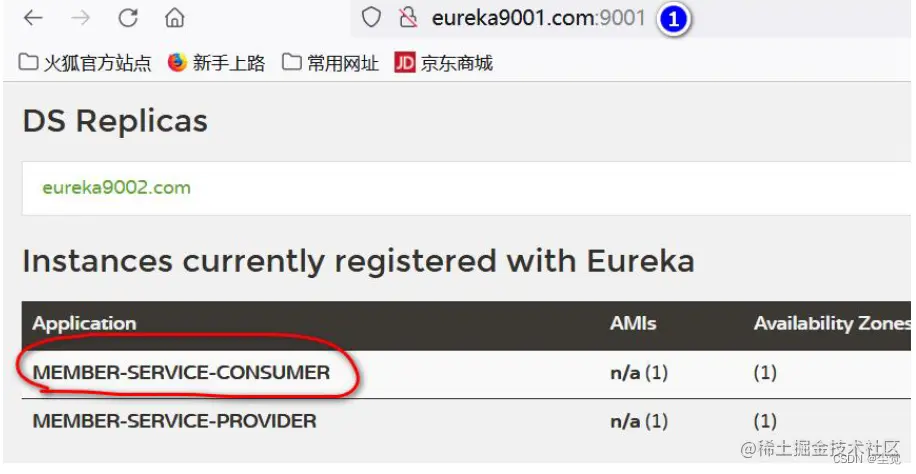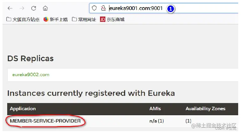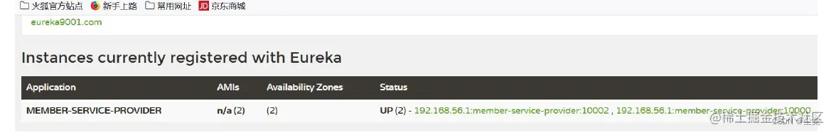 3. 观察member-service-provider-10000 是否注册到Eureka 集群(目前2 台)