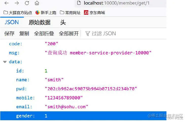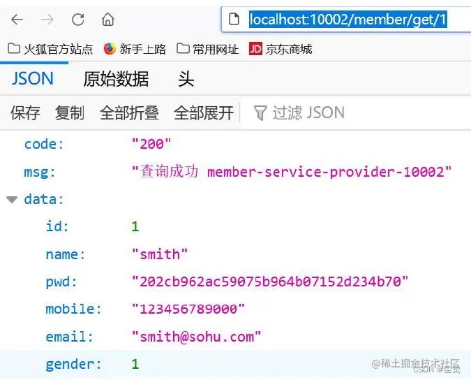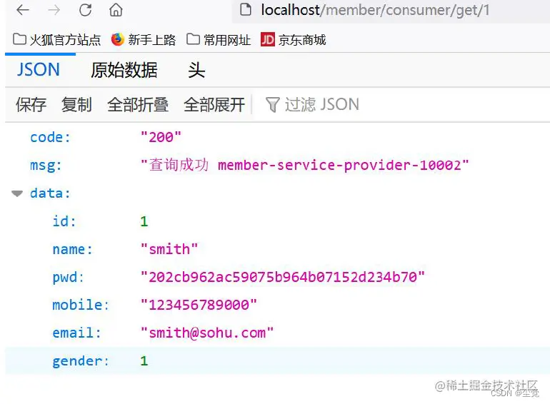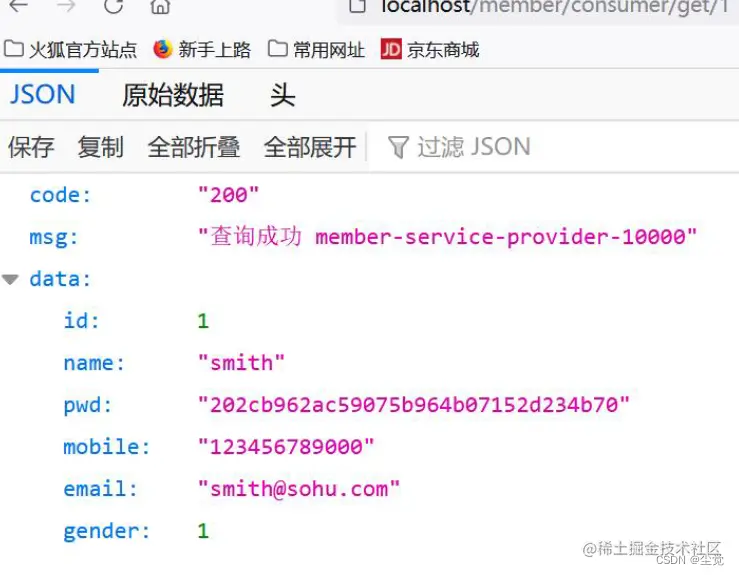 浏览器访问: http://localhost/member/consumer/get/1