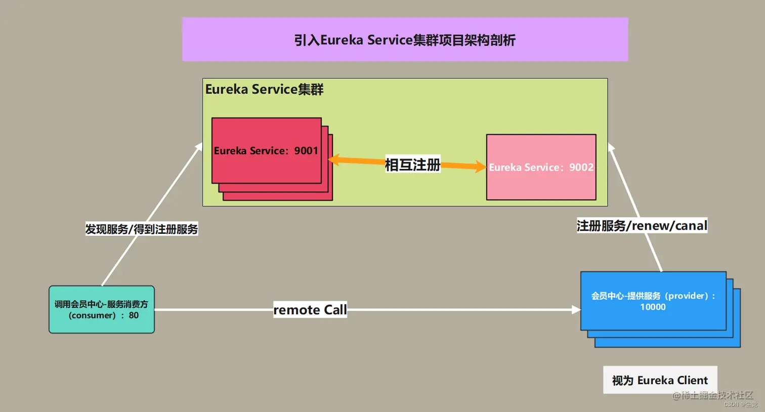 将member-service-provider-10000 注册到EurekaServer 集群(目前2 台)