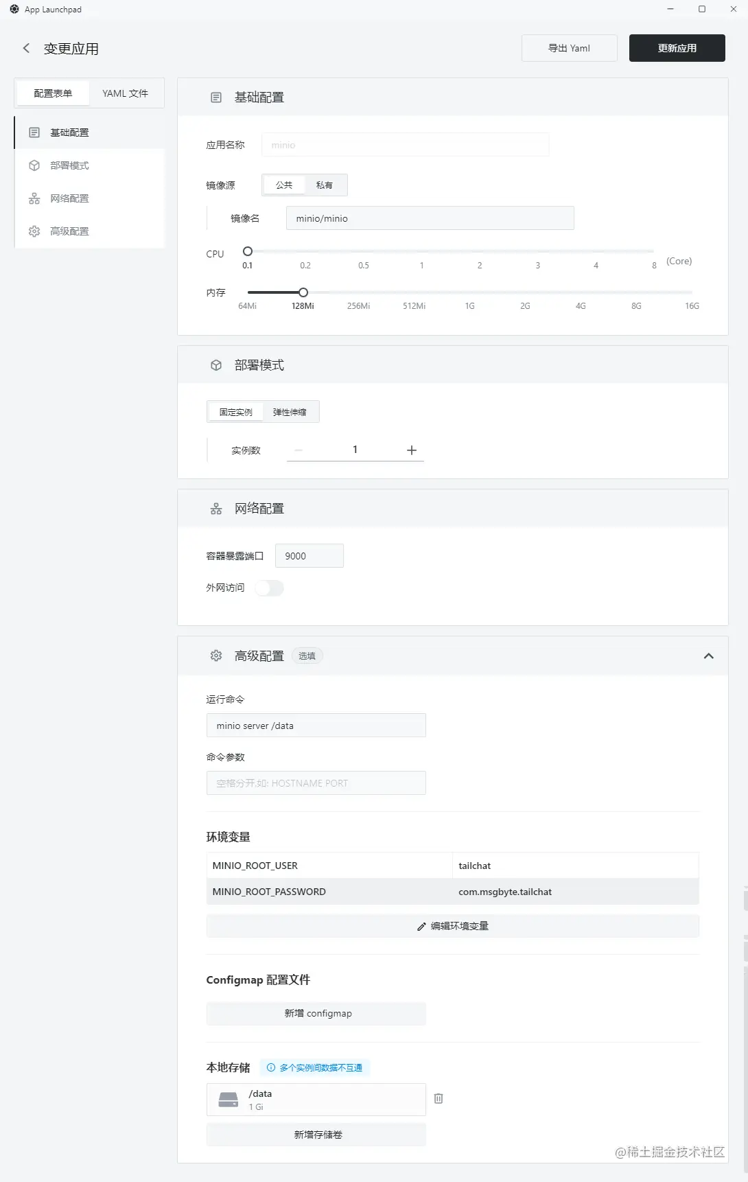 - MINIO_ROOT_PASSWORD: com.msgbyte.tailchat