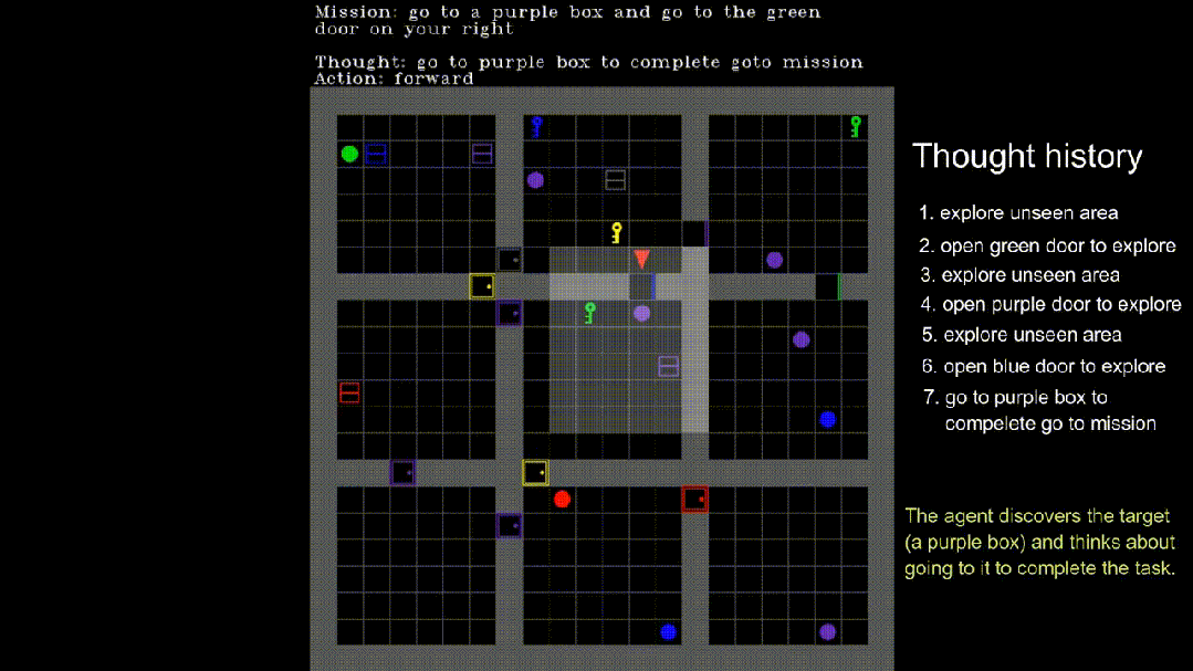 他们设计了一个双层架构的AI智能体:上层组件负责思想生成,下层组件负责根据思想执行操作。他们在BabyAI环境中进行了实验,并与传统的行为克隆方法进行了对比。