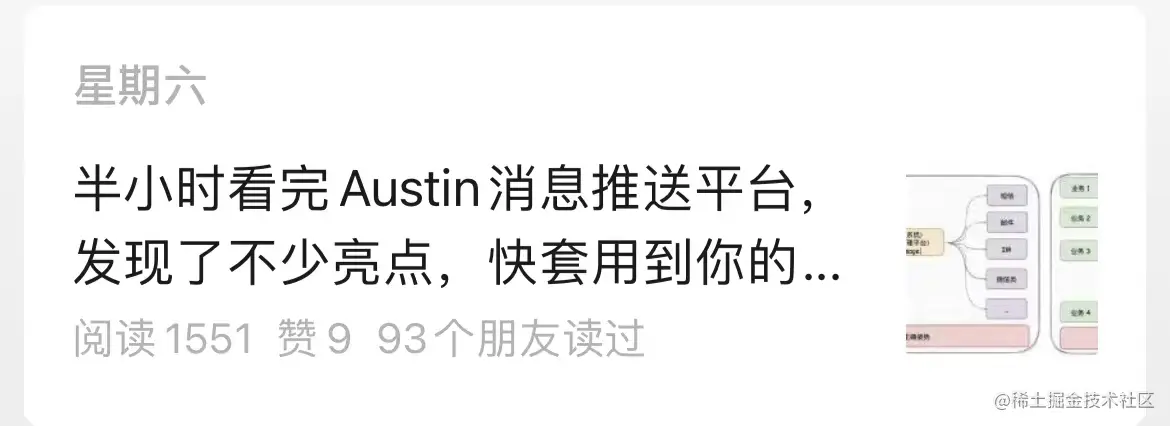 austin跟商城/外卖这种项目不一样的是:只要有点规模的公司,都会有消息推送平台这种系统,不会受到公司具体业务的影响。