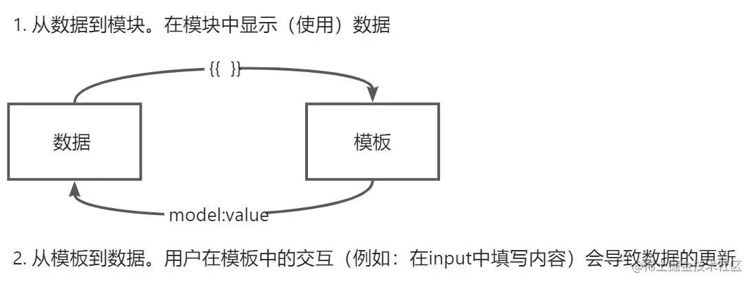 在页面中渲染数据时所用到的一系列语法叫做模板语法,对应到 Vue 中就是指令的概念。