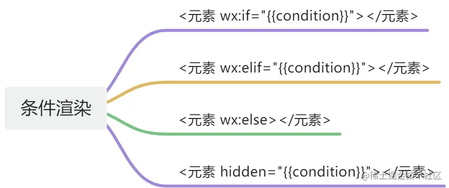 - 在小程序中,使用wx:if="{{条件}}"来判断是否需要渲染该代码块