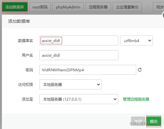 宝塔数据库菜单中修改root密码为 pwd123456。